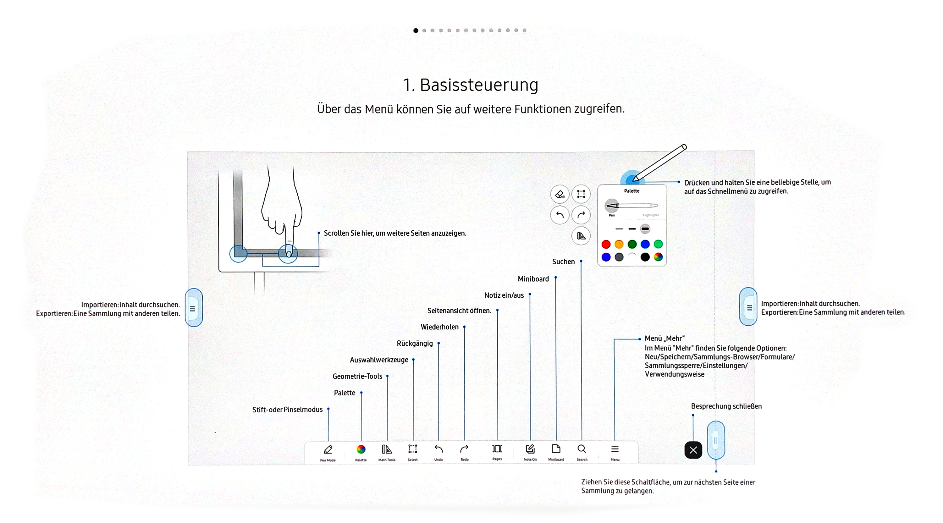 In einigen neuen Hörsälen wurden Samsung-Flipcharts (auch Flipboards genannt) eingebaut. Hier finden Sie eine Anleitung zu deren Bedienung. Zusätzlich finden Sie alle Bilder nochmal in dieser PDF: PDF öffnen